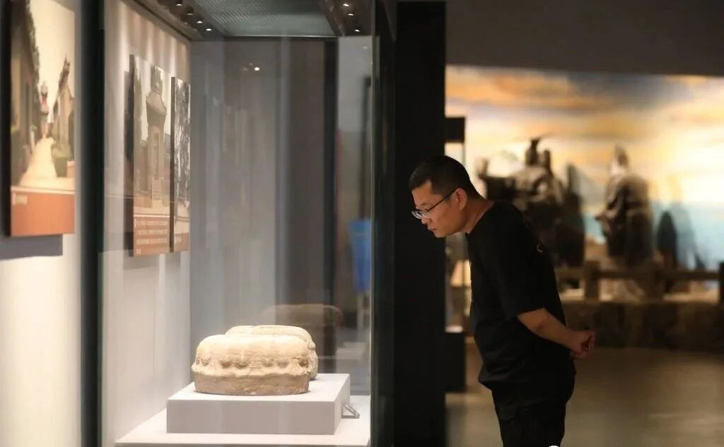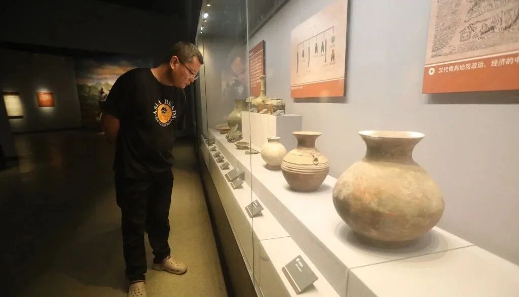 王炜在青岛市博物馆内的展馆欣赏老物件