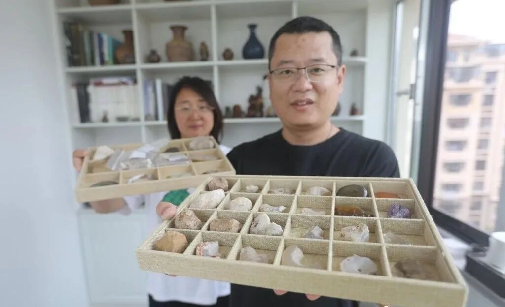 王炜夫妻展示家中的藏品