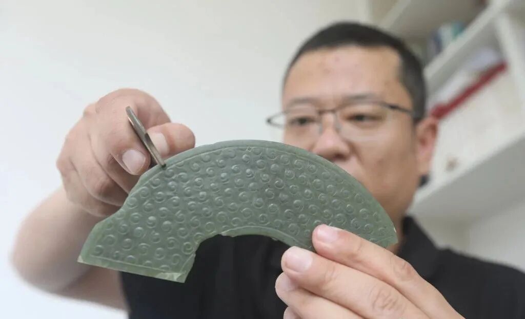 在日常研究中,王炜会在研究工艺痕迹的时候,对物品进行一定的逻辑推理,比如他正在用尺子测量这个玉珩,可以通过两侧的尺寸有一定误差推断出这是一件古代的玉璧,在古代因受过外力受损后,发生了破裂,但是经过当年工匠精心改造后,变成了一件玉珩,还可以从这块玉器的纹路上,推测出当年工匠超凡的手艺。